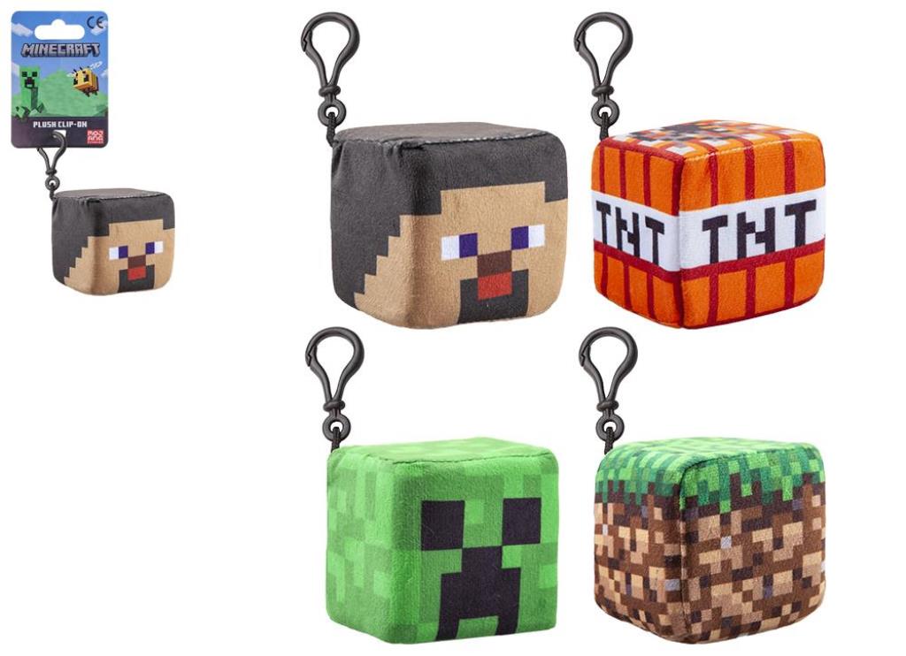 Minecraft 8cm Plush Cube With Clip ( Assorted Designs )