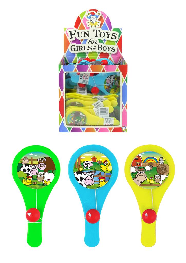 FARM ANIMAL MINI PADDLE BAT AND BALL GAMES (12CM) 96PC