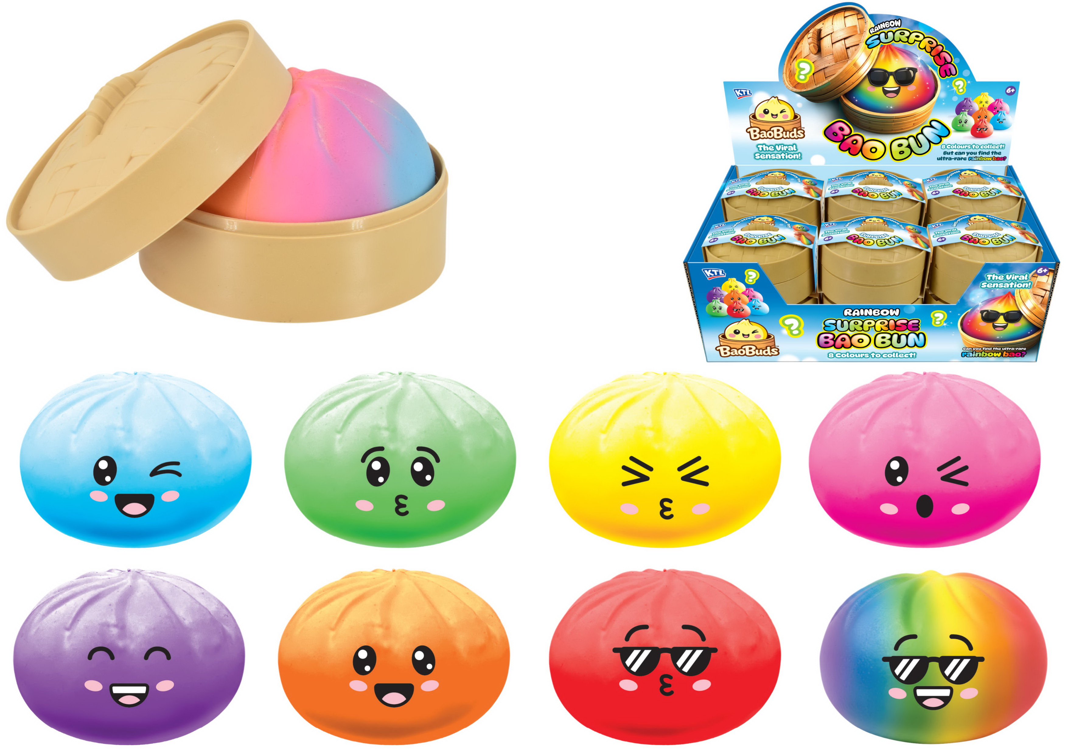Rainbow Squishy Bao Bun In Dumpling Case 8.5cm